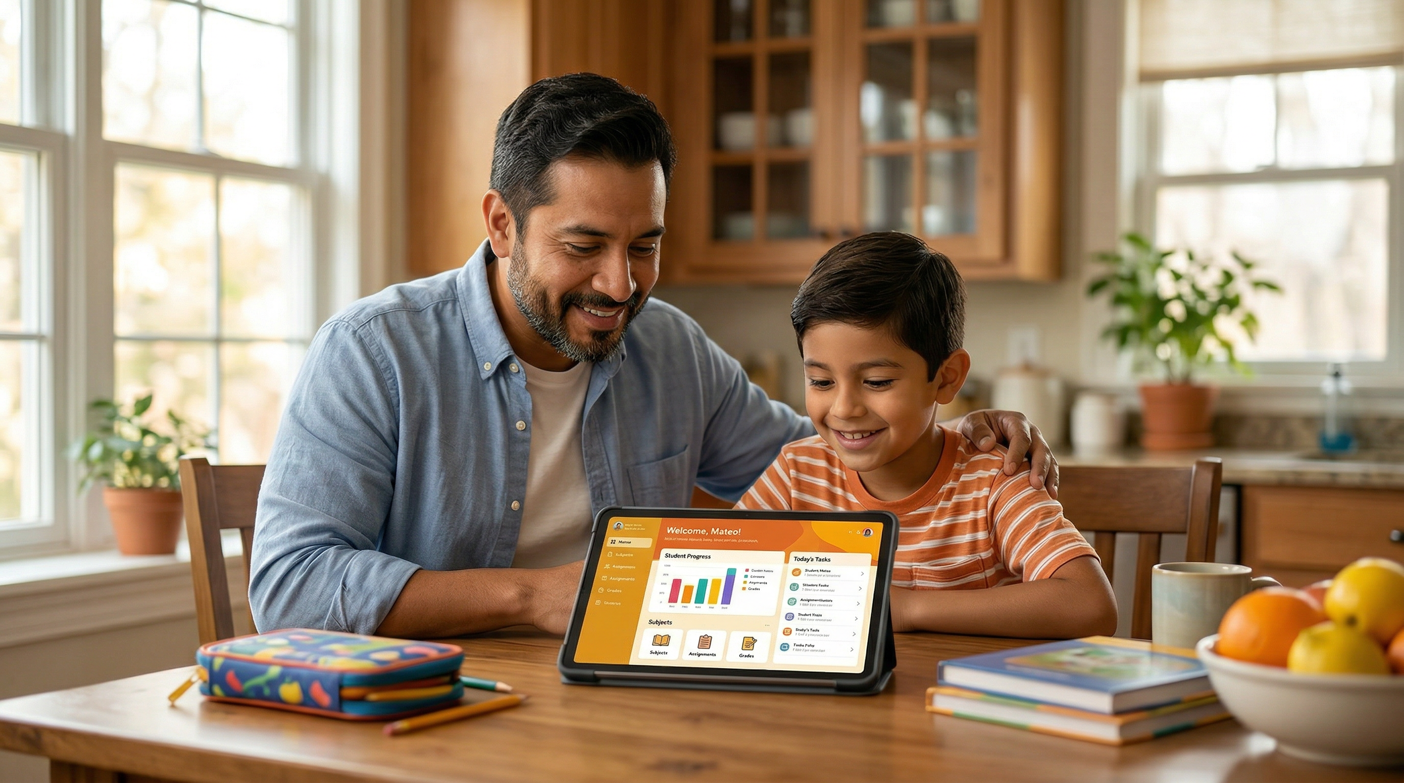 The Home Kitchen gives you everything you need to extend your child's learning beyond the school day. Access at-home support resources tied directly to what your child is working on in class, so you can support their reading and writing practice with confidence — even if it's been a while since you were in school yourself.