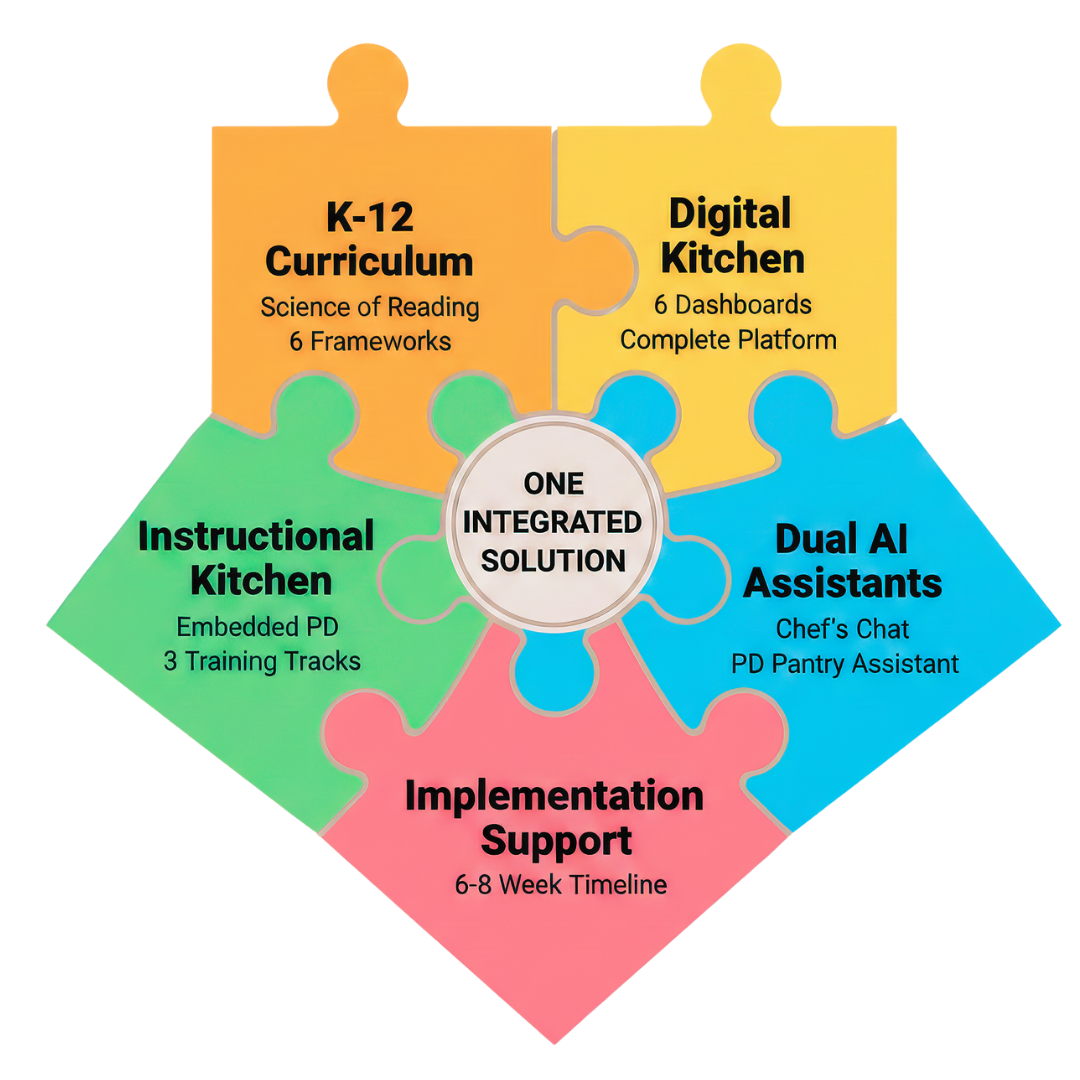 Full curriculum access, student data, lesson plans, assessment tools, and Chef's Chat AI